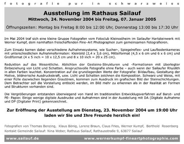 Ein Tag Im Steinbruch Sailauf Thomas Benzing, Klaus Böning, Lorenz Braun, Klaus Fries, Werner Kumpf, Berdhold Rosenberg im Radhaus Sailauf